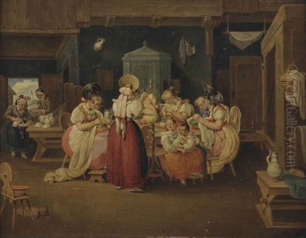 Bring the timeless beauty of Johann Baptist Pflug's A Group Of Spinsters In An Interior into your home with a handmade oil painting reproduction. Carefully recreated on canvas by skilled artists using traditional techniques, this piece captures the delicate brushwork, subtle light, and vibrant color of the original masterpiece. With museum-level quality and rich texture, it brings elegance and artistic depth to any space. Enjoy free shipping and make this masterpiece a part of your personal collection.