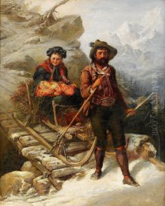 Travellers Near A Ruin In A Mountainous Landscape