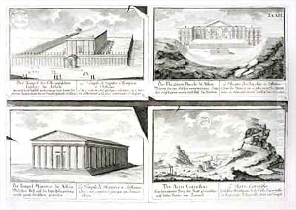 Views of four Classical Buildings The Temple of Olympian Zeus the Theatre of Dionysus in Athens the Temple of Athena in Athens and a Temple in Corinth