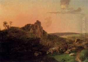 A Shepherdess And Her Flock In An Extensive Wooded Landscape