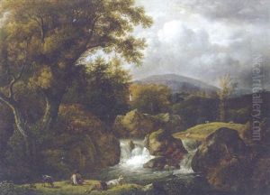 A Wooded River Landscape With Peasants Resting By The Waterside