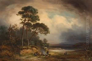 Waldlandschaft Mit Fuhrmann Und Eselskarren Waldlandschaft Mit Fuhrmann U