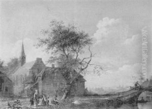 An Italianate River Landscape With Travellers And A Bridge Beyond