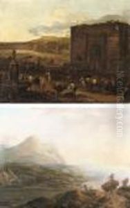 Travelers In An Extensive River Landscape With Castle