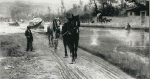 Paysage Panoramique Traverse Par Une Riviere Avec Paysan Et Ses Betes Sur Un Pont