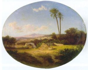 Middle Eastern Scene With People Nearwater And Figure On Camel