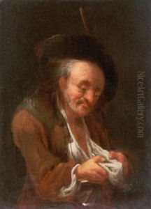 Peasants Smoking And Drinking Outside The An Inn; A Musician Standing Nearby Smoking And Resting Peasants Outside An Inn