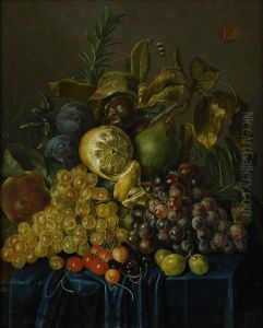 Stillleben Mit Weintrauben, Pfirsichen, Zwetschken Und Einer Melone