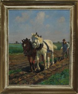 Der Bauer Pflugt Mit Zwei Pferden Den Acker