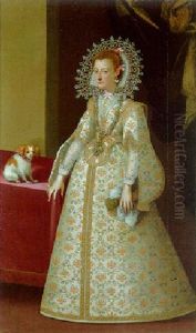 Portrait Of A Lady (the Marchesa Asinari Di Caraglio?) In A White Dress With A Blue Mantle