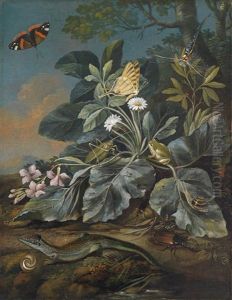 A Forest Floor Still Life With A Lizard, A Dragonfly And Two Butterflies; And A Forest Floor Still Life With A Lizard, Snails And Butterflies