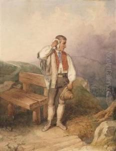 Animated View With Roman Ruins And Travelers Being Ferried Across A River
