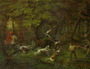 A Wooded Clearing With A Huntsman At Rest With His Hound And A Deadhare, Woodcock And Other Birds
