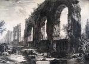 Figures Among Ruins Along An Aqueduct