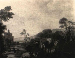 Pastorale Landschaft Mit Kuh Und Ruhenden Schafen