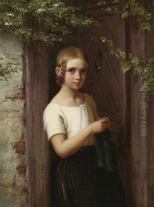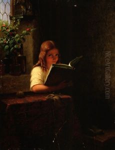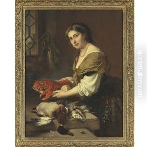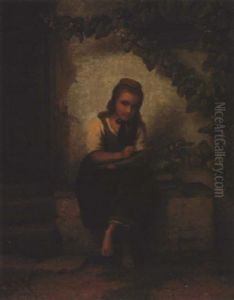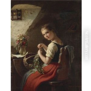 Kleines Bauermadchen Mit Einem Blumenkorb In Einer Fensterlaibung Sitgzend