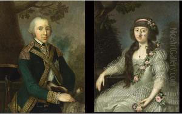 A Portrait Of Clemens, Graf Von Hohnstein (born 1763), Standing Half-length, Wearing A Green With Gold Suit, With A Dog