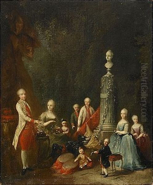 Portratt Av Kejsarinnan Maria Theresia Av Osterrike Och Hennes Son Den Samregerande Kejsaren Josef Ii Samt Flera Av Hennes Ovriga Barn