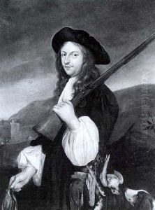 Bildnis Eines Jagers Mit Erlegter Beute Vor Landschaftshintergrund