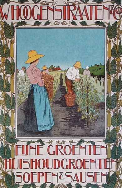Harvesting peas, poster advertising 'Whoogenstraaten & Co., purveyors of fine vegetable, soups and sauces' c.1898-90