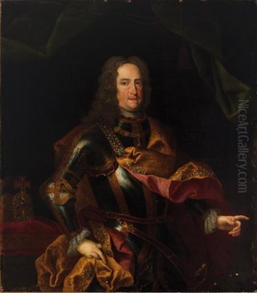 Portrait De L'empereur Charles Vi (1685-1740) En Armure, Avec L'ordre De La Toison D'or Et La Couronne Du Saint Empire Romain Germanique