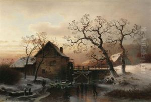 Winterlandschaft Mit Schlittschuhlaufer