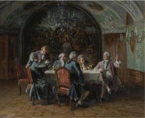 Johann Hamza was an Austrian painter known for his detailed and realistic genre works and portraits, often characterized by their vivid storytelling and emotional depth. Born on March 21, 1850, in Telč, Moravia (then part of the Austrian Empire, now the Czech Republic), Hamza showed an early affinity for art. He pursued his passion by studying at the Academy of Fine Arts in Vienna under the tutelage of renowned artists such as Christian Griepenkerl and Carl Wurzinger.
