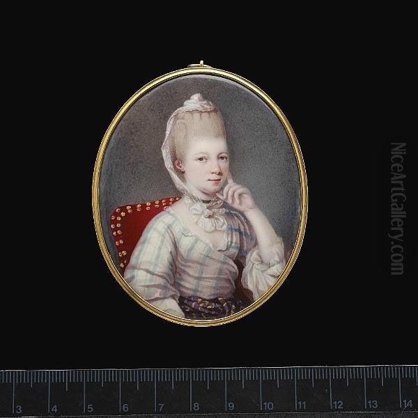 Bring the timeless beauty of Johann Heinrich Hurter's A Lady, Seated In A Red Upholstered Chair, Wearing White Dress With Green Striped White Underslip And Purple Sash Striped With Yellow, Black Ribbon Choker, Her Hair Powdered And Worn High Dressed With White Lace Tied Beneath Her Chin, Her Left Hand Raised into your home with a handmade oil painting reproduction. Carefully recreated on canvas by skilled artists using traditional techniques, this piece captures the delicate brushwork, subtle light, and vibrant color of the original masterpiece. With museum-level quality and rich texture, it brings elegance and artistic depth to any space. Enjoy free shipping and make this masterpiece a part of your personal collection.