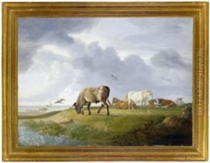 2 Bll.: Die Vieherde Mit Hirten - Landschaft Mit Pferdewagen.