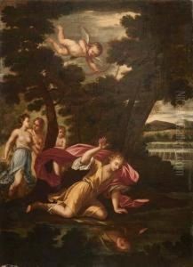 Drei Grazien Beim Emporheben Amors In Einem Korb