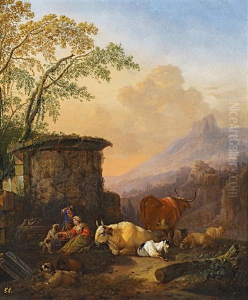 Italienische Landschaft Mit Hirten Und Vieh Oil Painting by Johann Heinrich Roos
