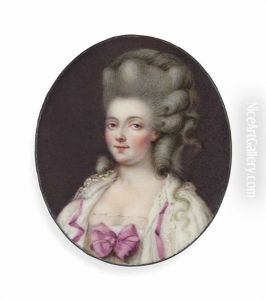 A Young Lady, In White Shift With Lilac Ribbons And Bow At Corsage, Her Upswept Powdered Hair Dressed In Ringlets