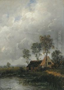 Landscape With Birch Trees By A Lakeshore And Two Men In A Boat