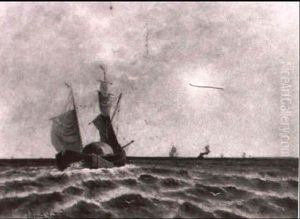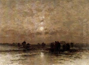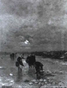 Fischer Am Strande Einer Hollandischen Hafenstadt. Abendstimmung
