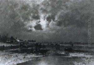 Hollandische Landschaft An Einem Winterabend