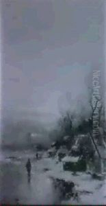 A Winter Landscape With Peasants Walking On The Ice
