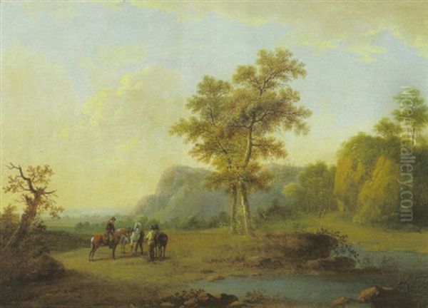 Drei Reiter Bei Der Rast An Einem Wasser