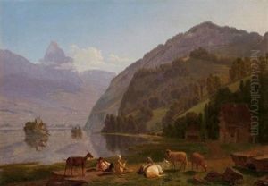 Vue D'un Lac De Montagne Anime De Bergers Et De Danseuses