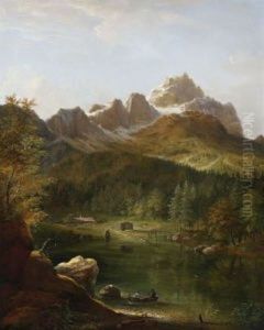 Bayerische Gebirgslandschaft Mit Maultiertreiber