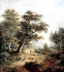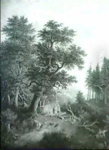 Waldige Landschaft Mit Jager Und Kuhherde An Einem Gewasser