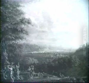 Peasants Worshipping A Statue Of Pan In An Extensive Italianate Landscape