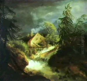 Gebirgslandschaft Mit Muhle Uber Dem Gebirgsbach
