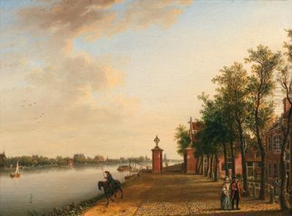 Passeggiata Lungo Il Canale Con Una Coppia E Un Uomo Cavallo Presso Sloterdijk