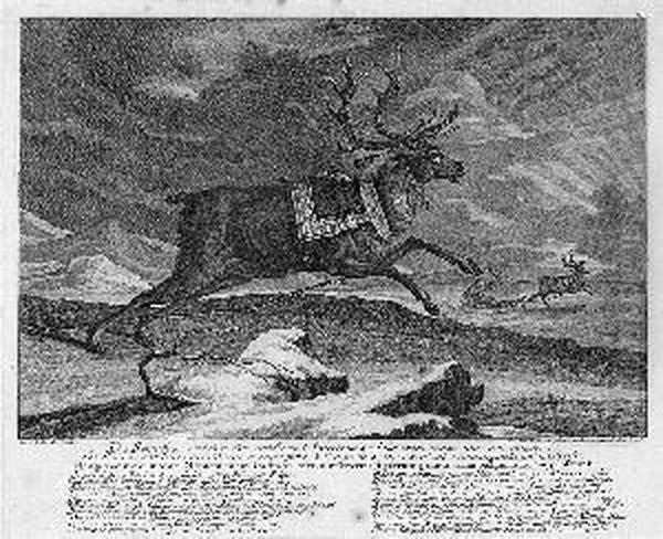 J.e. "die Rennthier". Kupferstich. Ba: 35 X 43 Cm. Rahmen