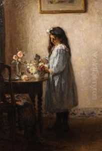 Girl Standing Beside A Table With A Flower Vase