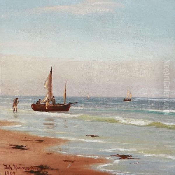 Bring the timeless beauty of Johann Neumann's Beach Scene With Fishermen On Their Way Out To Sea into your home with a handmade oil painting reproduction. Carefully recreated on canvas by skilled artists using traditional techniques, this piece captures the delicate brushwork, subtle light, and vibrant color of the original masterpiece. With museum-level quality and rich texture, it brings elegance and artistic depth to any space. Enjoy free shipping and make this masterpiece a part of your personal collection.