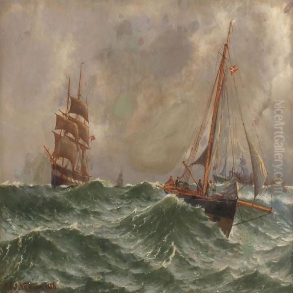 Sailing Ships In High Waves