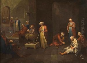 Bring the timeless beauty of Johann-Josef Karl Henrici's Quattro Scene Pendant In Un Serraglio: Un Sultano Compra Una Giovane Donna E Le Porge Un Anello D""""oro; Una Chiromante Legge La Mano Ad Un""""odalisca; Alcuni Pirati Offrono Ad Un Sultano Una Fanciulla Svenuta Che Hanno Rapito into your home with a handmade oil painting reproduction. Carefully recreated on canvas by skilled artists using traditional techniques, this piece captures the delicate brushwork, subtle light, and vibrant color of the original masterpiece. With museum-level quality and rich texture, it brings elegance and artistic depth to any space. Enjoy free shipping and make this masterpiece a part of your personal collection.