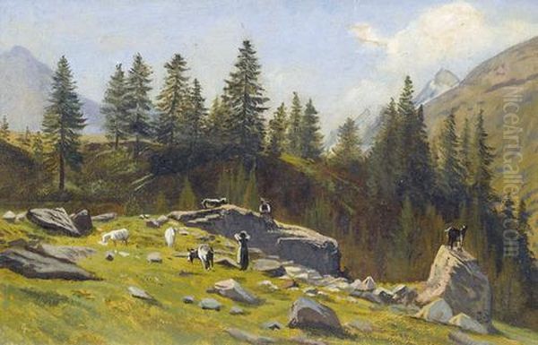 Sommerliche Alppartie Mit Hirten, Schafen Und Ziegen