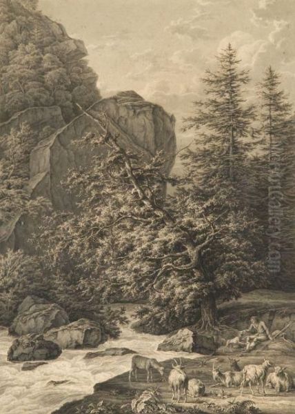 Berger Et Son Troupeau Au Pied D'un Torrent A Brienne